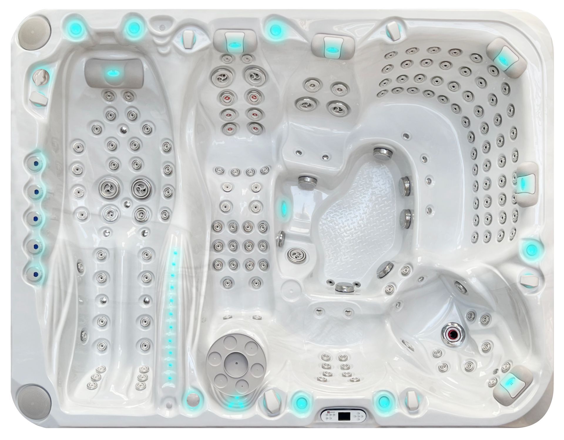 Of all the impressive features which the Felicity is rich in, what jumps out is the spacious bench with the 44 jets in the backrest. The jets are continuously from bottom to top, giving you the feeling that the massage is rolling up your back. The other seats will spoil you with delicious hydrotherapy. The delight of the massage jets can also be experienced under the enjoyment of atmospheric music and mood lighting.